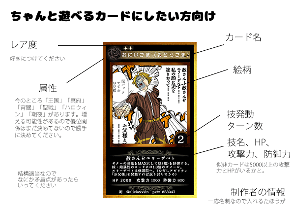 本物のトレカのように売買をしたり、このテンプレート使ってを同人用の商品として販売するなどはしないでください。